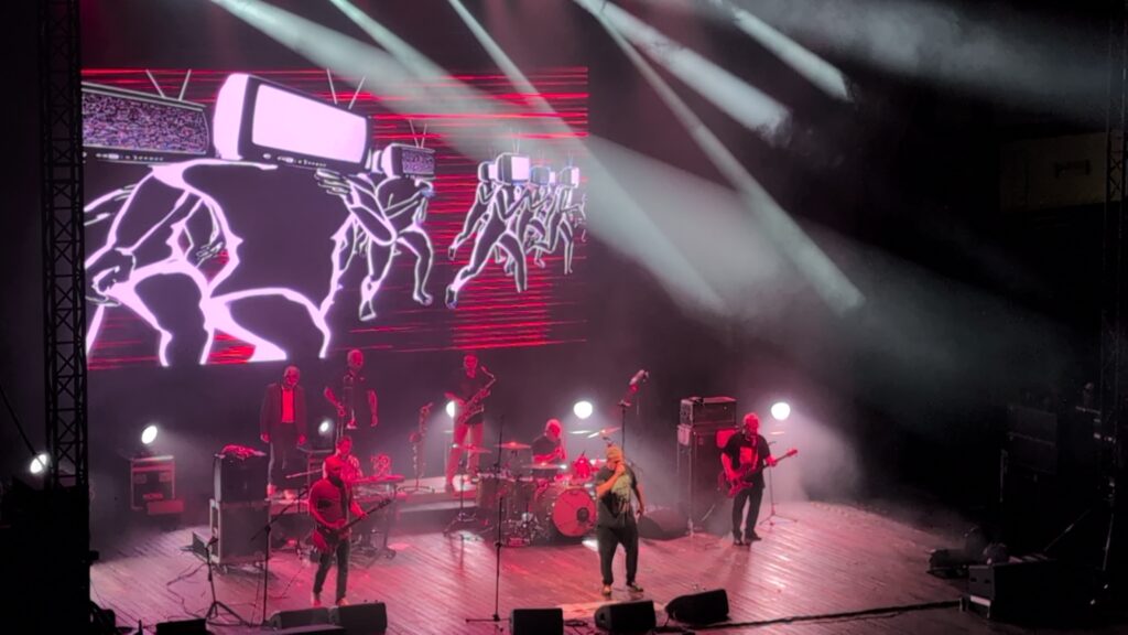 Były i bardziej współczesne komentarze – jak kończący koncert hymn “Sowieci” wykonany na tle dużej ukraińskiej flagi. Brzmiący złowieszczo.