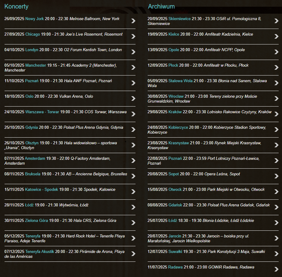 Koncert w Kielcach był częścią dużej trasy koncertowej Kultu pn. “Live in”. Patrząc na harmonogram występów, trzeba przyznać, że mają chłopaki dużo zdrowia – trasa odbywa się nie tylko w Polsce, ale i w USA, Niemczech, Wielkiej Brytanii, Norwegii, Holandii, a nawet na… Teneryfie (na której Kazik ma również swoje wypadowe mieszkanie).